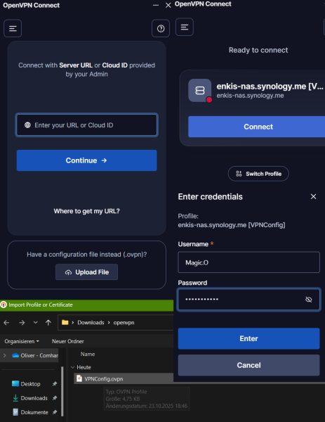 Screenshot des OpenVPN Clients, der zeigt wie man die Konfigurationsdatei öffnet